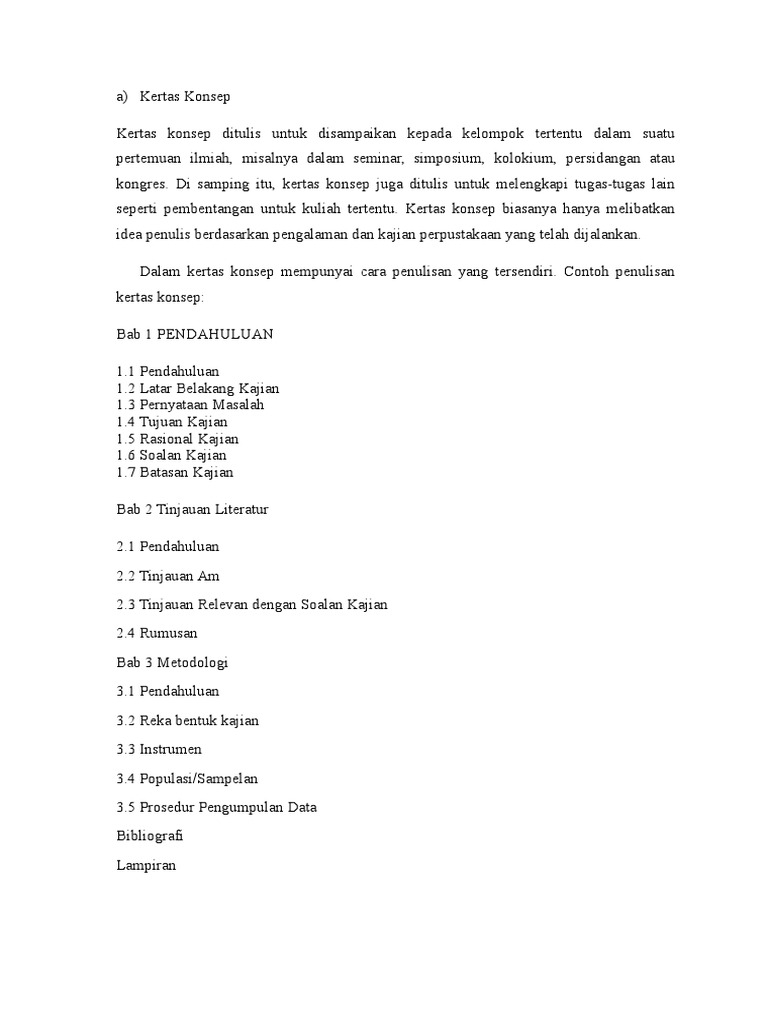 Objektif Matlamat. KERTAS KONSEP PERKHEMAHAN posted Oct 15 2009 124 AM by zaman hassan updated Jan 15 2011 659 PM Mengandungi pelbagai contoh kertas konsep dari rakan. Kertas Konsep ialah suatu penulisan yang merangkumi penerangan berkenaan sebahagian projek penyelidikan.